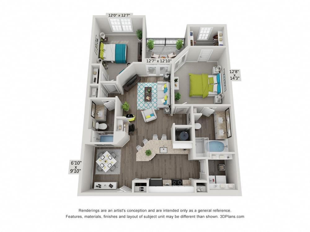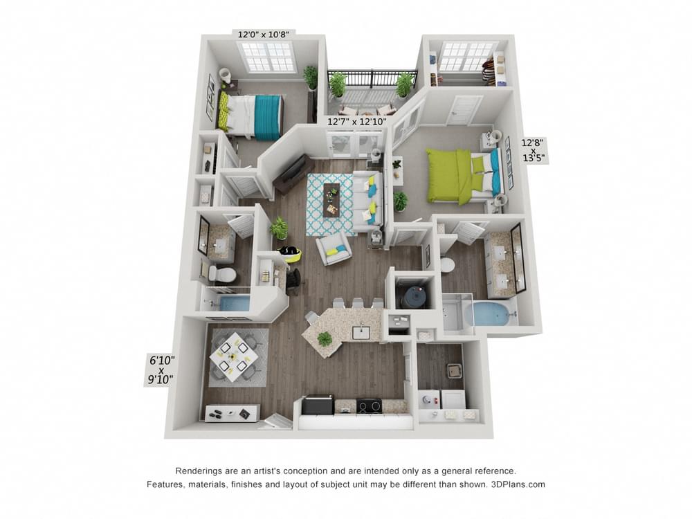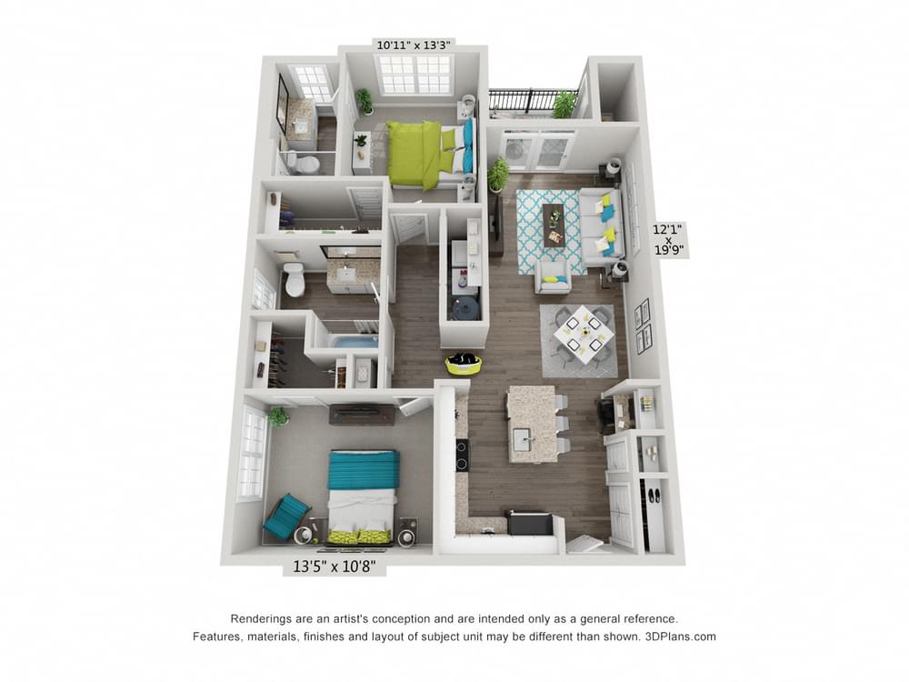 Unit Type2 Bed / 2 BathFloor Area1,193 sq. ft.AvailableTodayStarting at$1,751 / mo