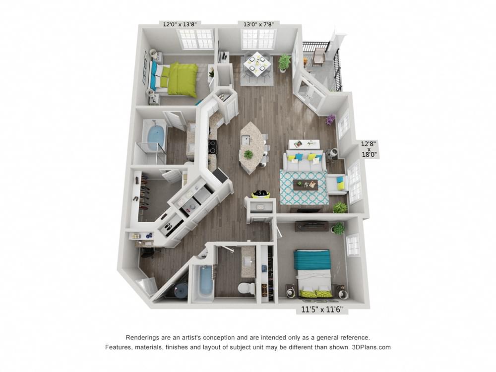 Unit Type3 Bed / 2 BathFloor Area1,306 sq. ft.AvailableTodayStarting at$1,875 / mo